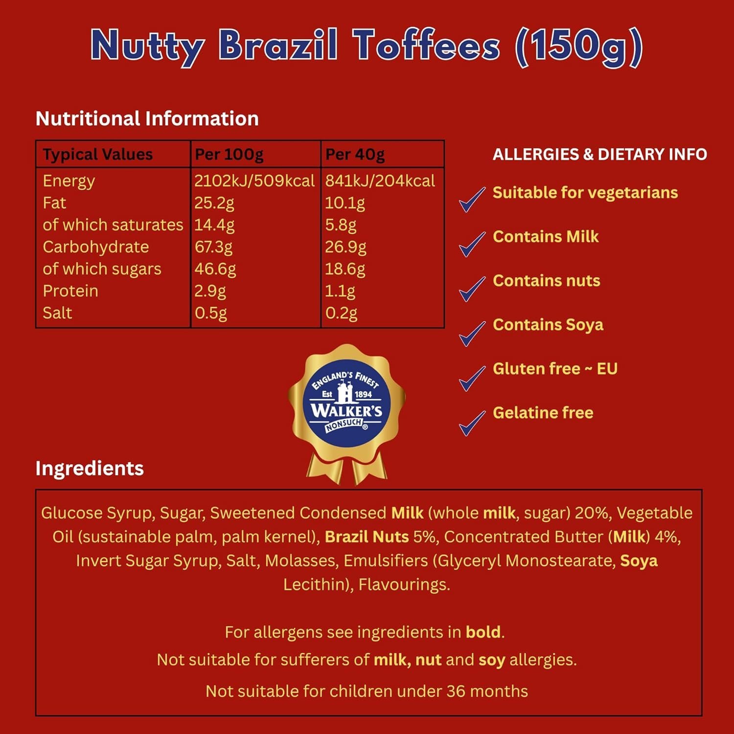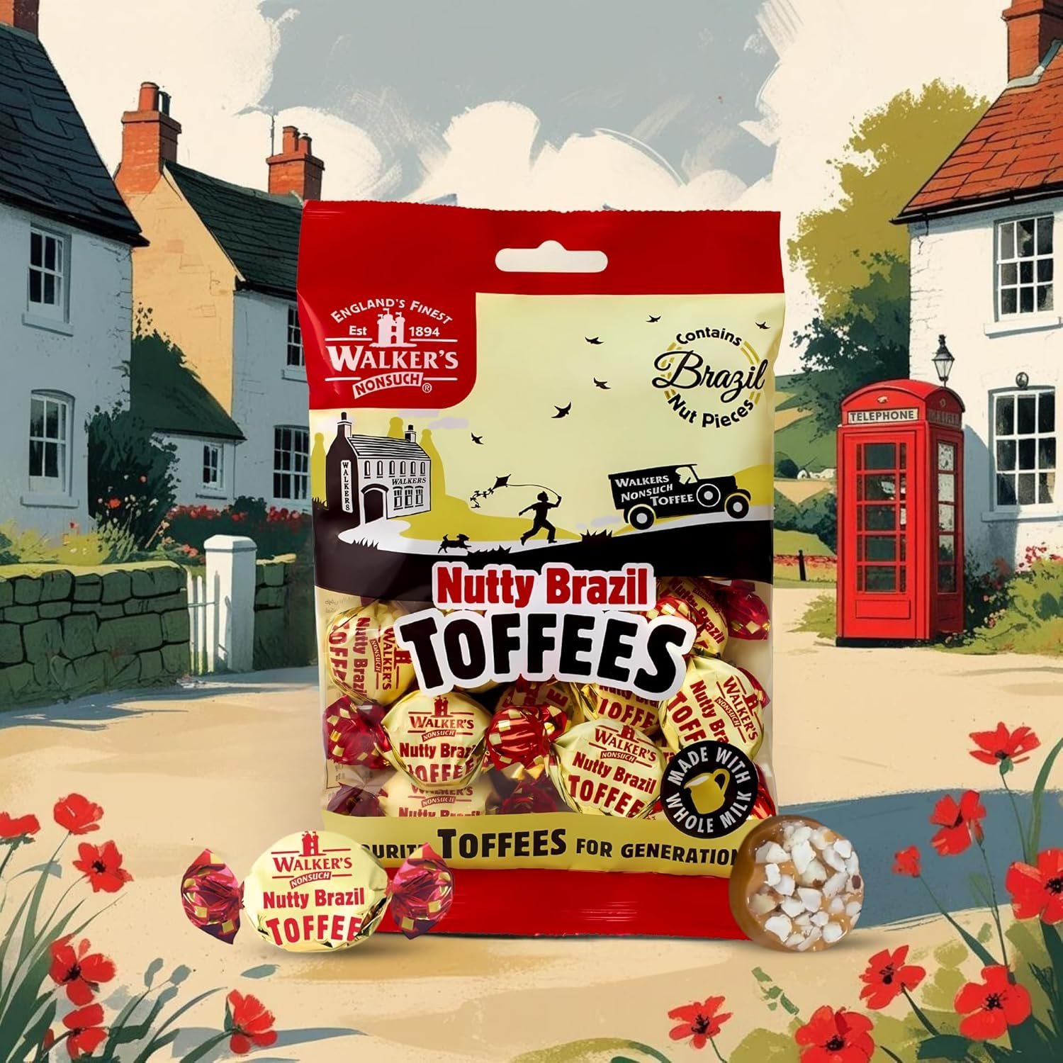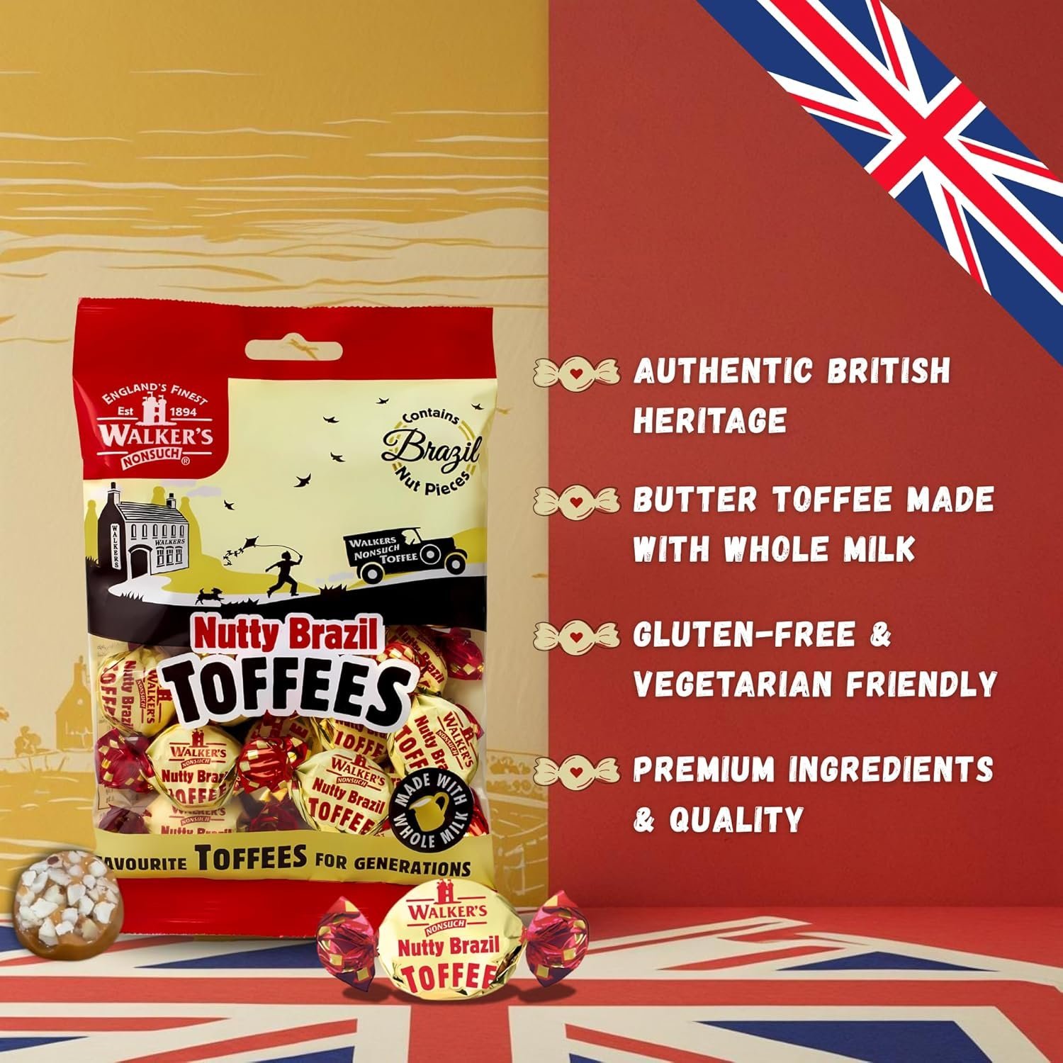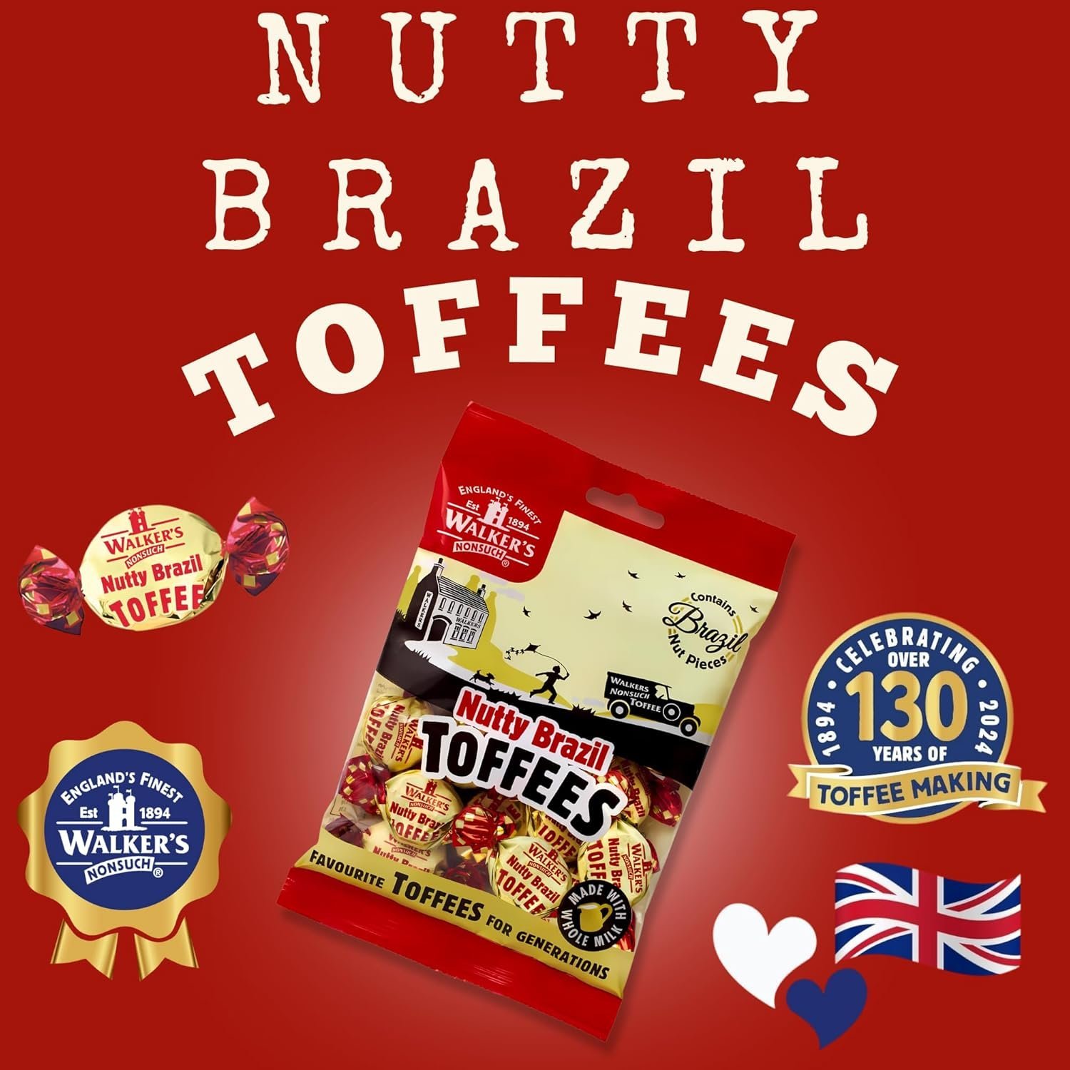 Walkers Nonsuch Nutty Brazil Toffees Bag 5.29 Oz (150g) – British Candy with Brazil Nuts, Individually Wrapped Butter Toffee Candy, English Toffee Sweets & Gourmet Food Gifts from UK